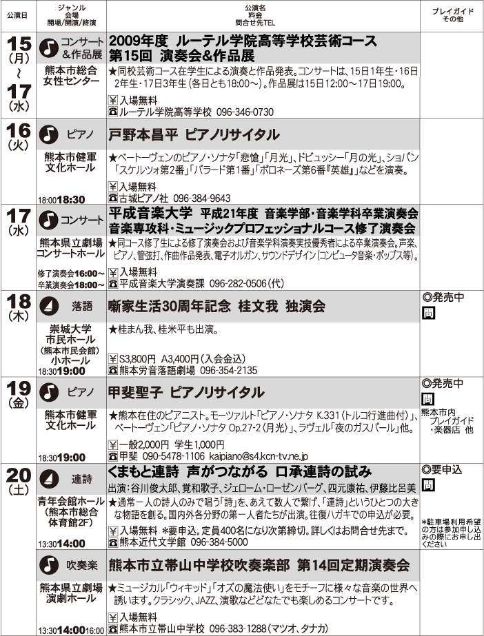 ■■■情報提供:コモド・アート・プロジェクト 『熊本ステージガイド・ドコサ』 ■■■ 〒860-0801 熊本市安政町1-2 カリーノ下通り3F TEL&FAX 096-284-8220 E-mail : info@comodo-arts.com